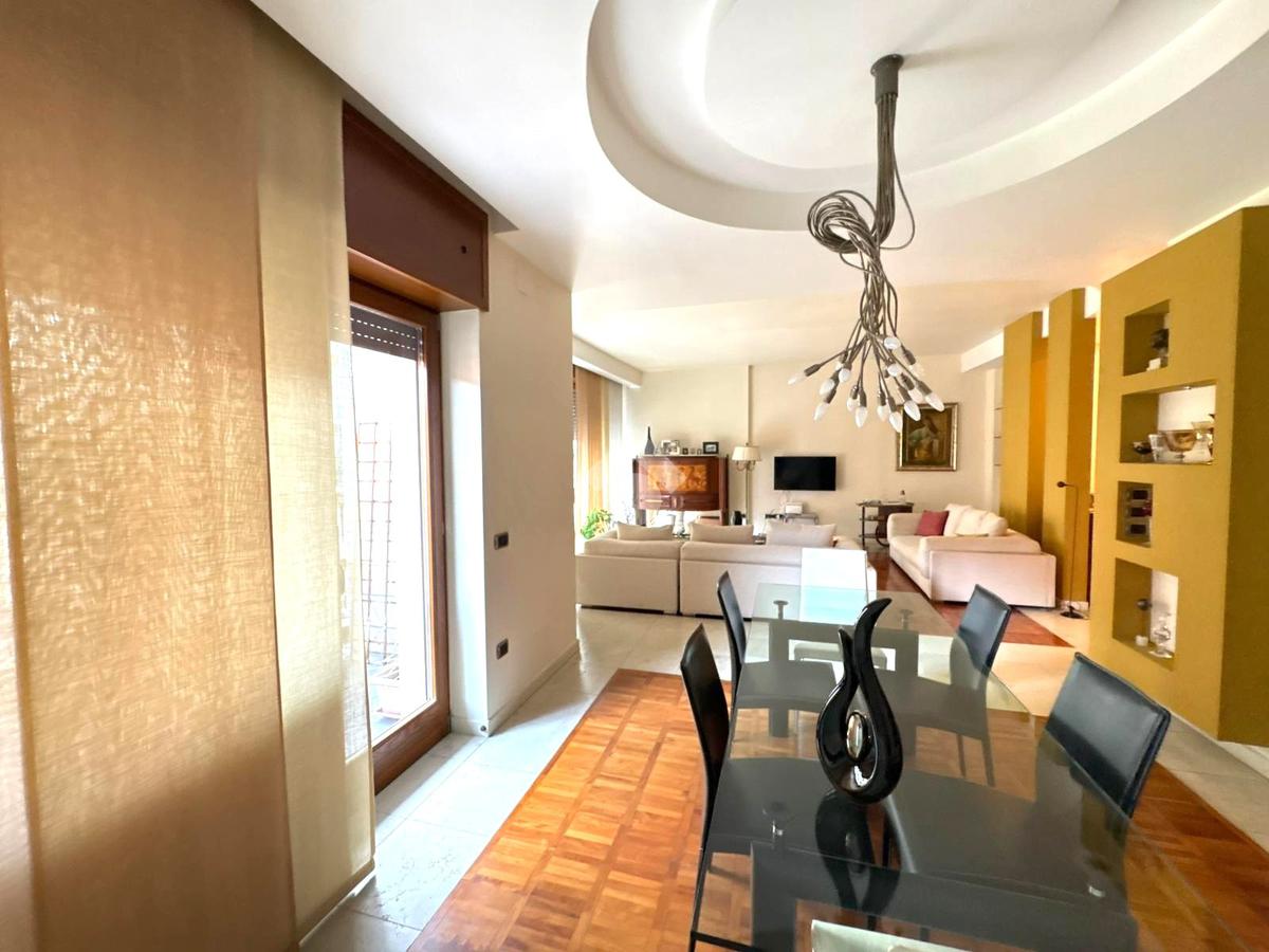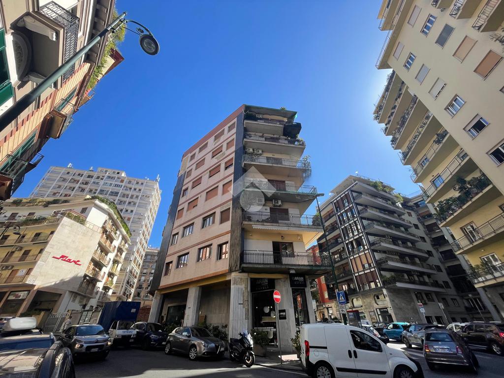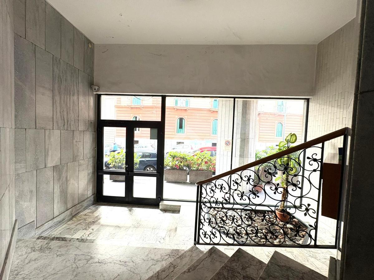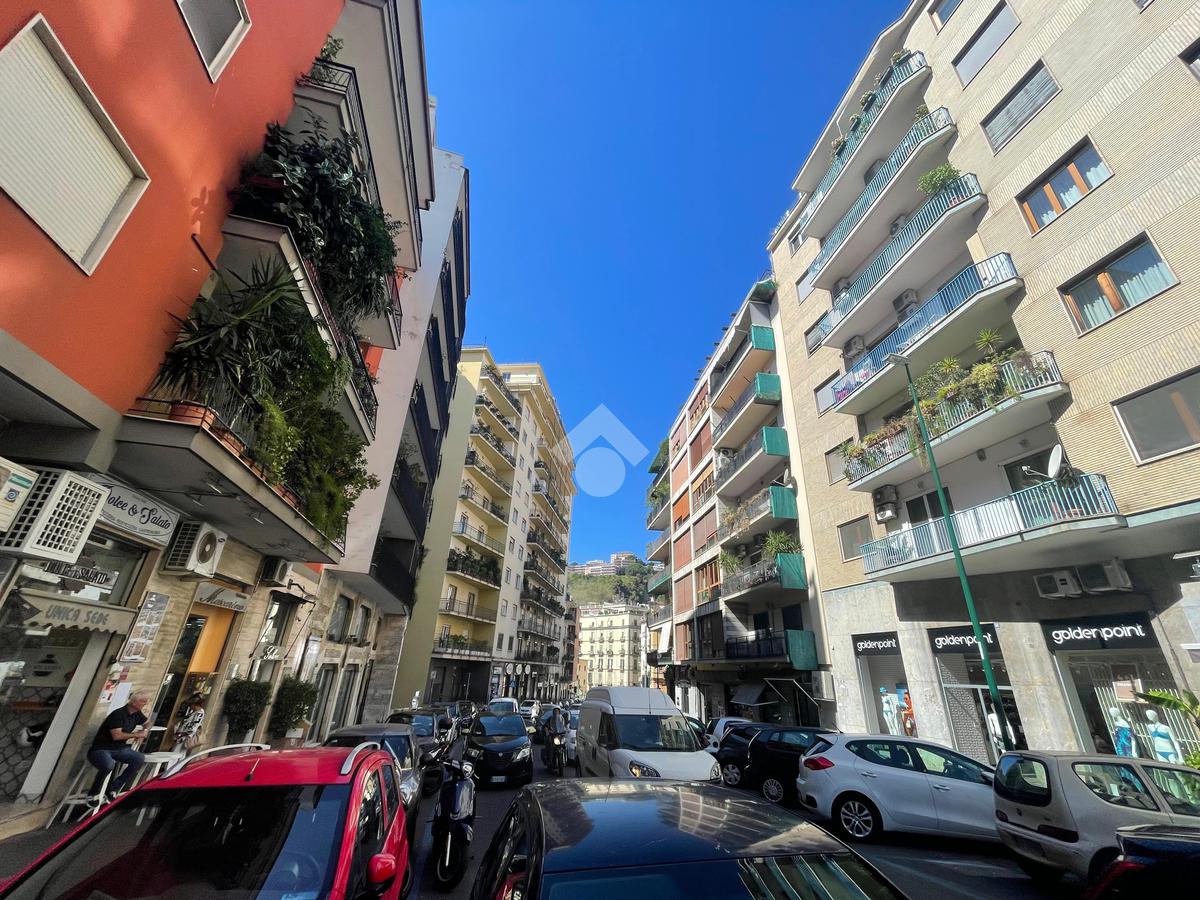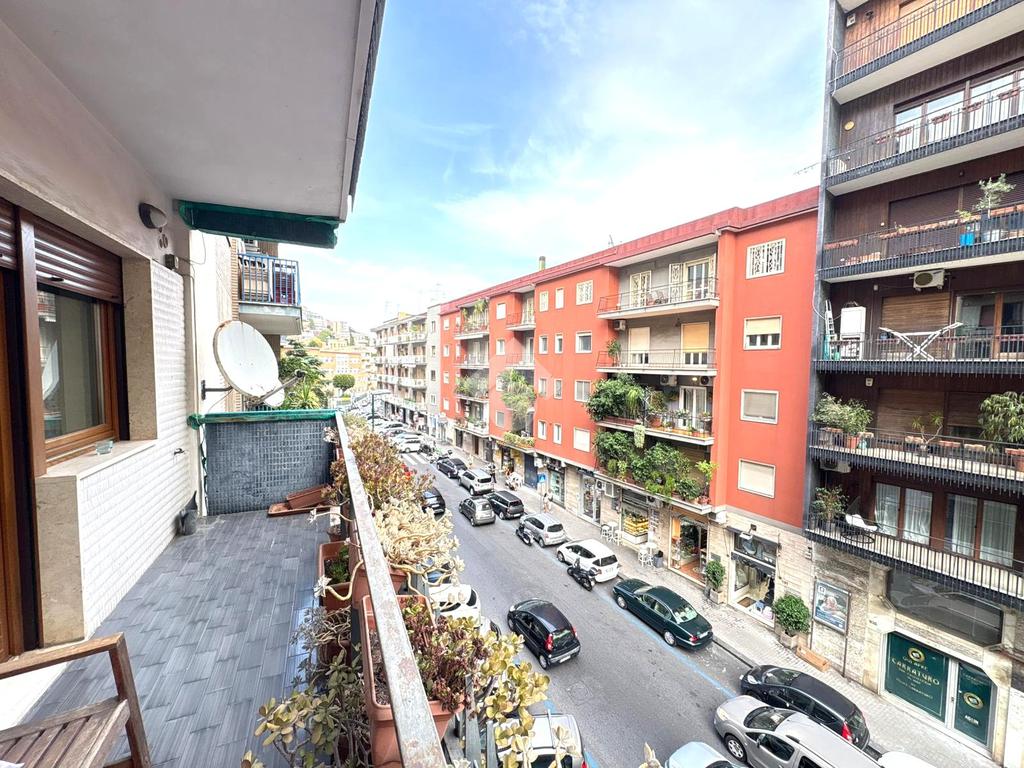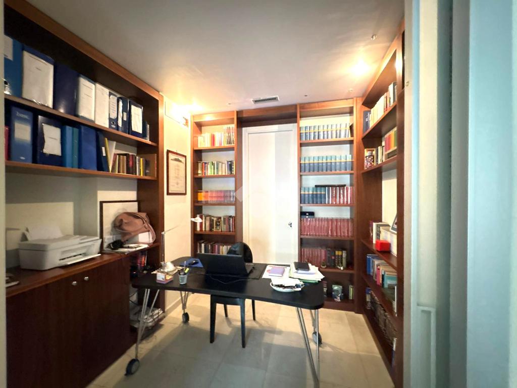 L'immobile, luminoso e soleggiato grazie ad una doppia esposizione, è composto da un ingresso in salone doppio con ampia balconata, cucina abitabile, camera da letto e camera matrimoniale con cabina armadio, camere che espongono entrambe su ampia balconata su Via Arangio Ruiz, una camera studio, lavanderia e doppi servizi, di cui uno con vasca ed uno con box doccia. Presente anche ingresso di servizio sul lato notte.