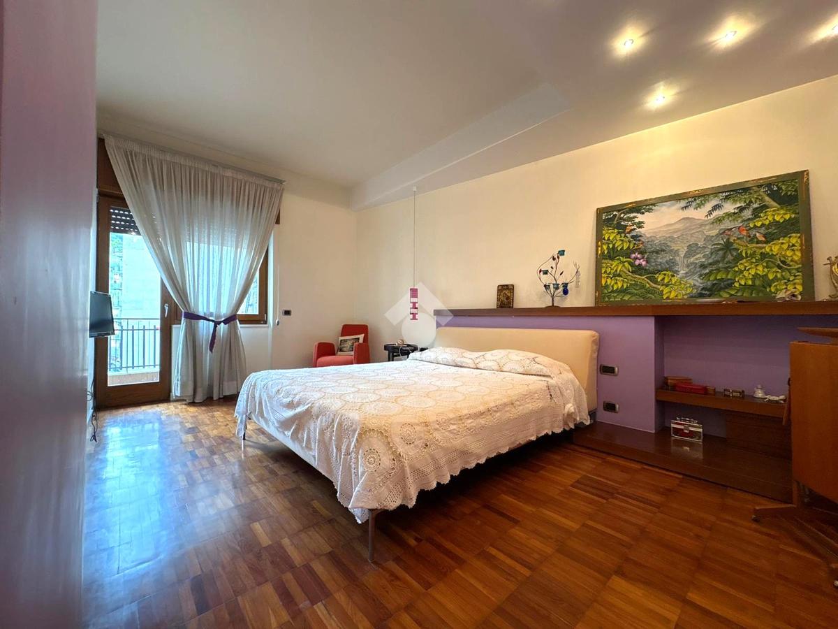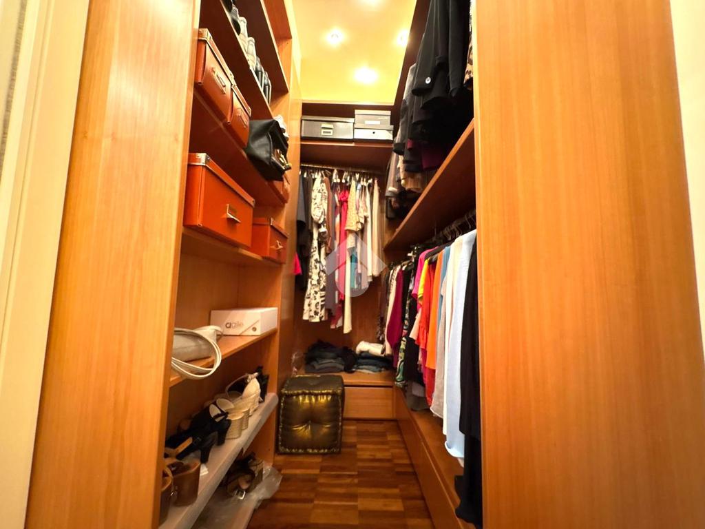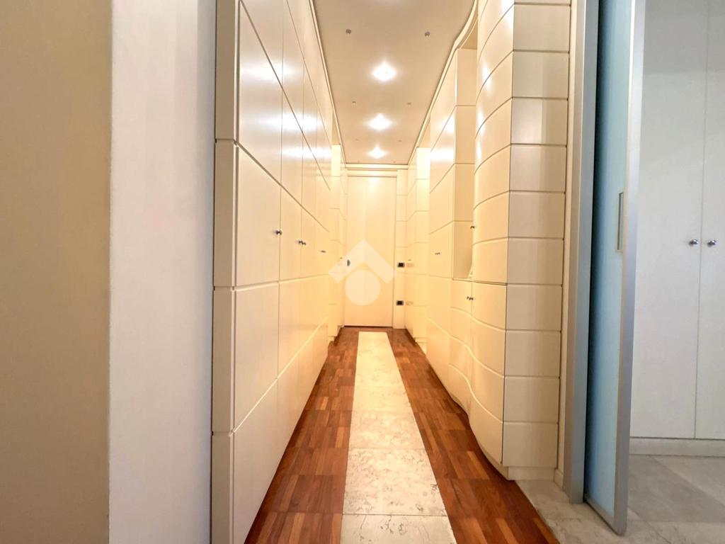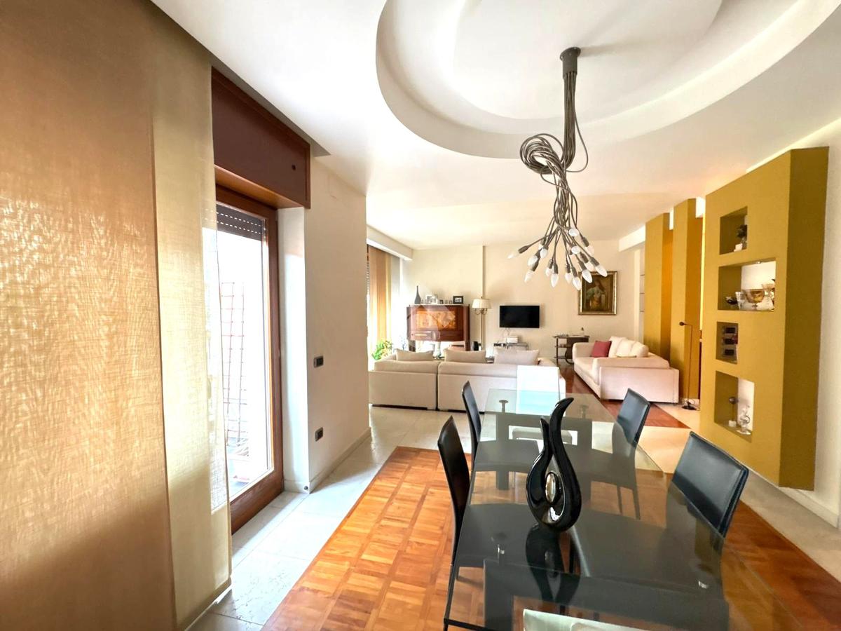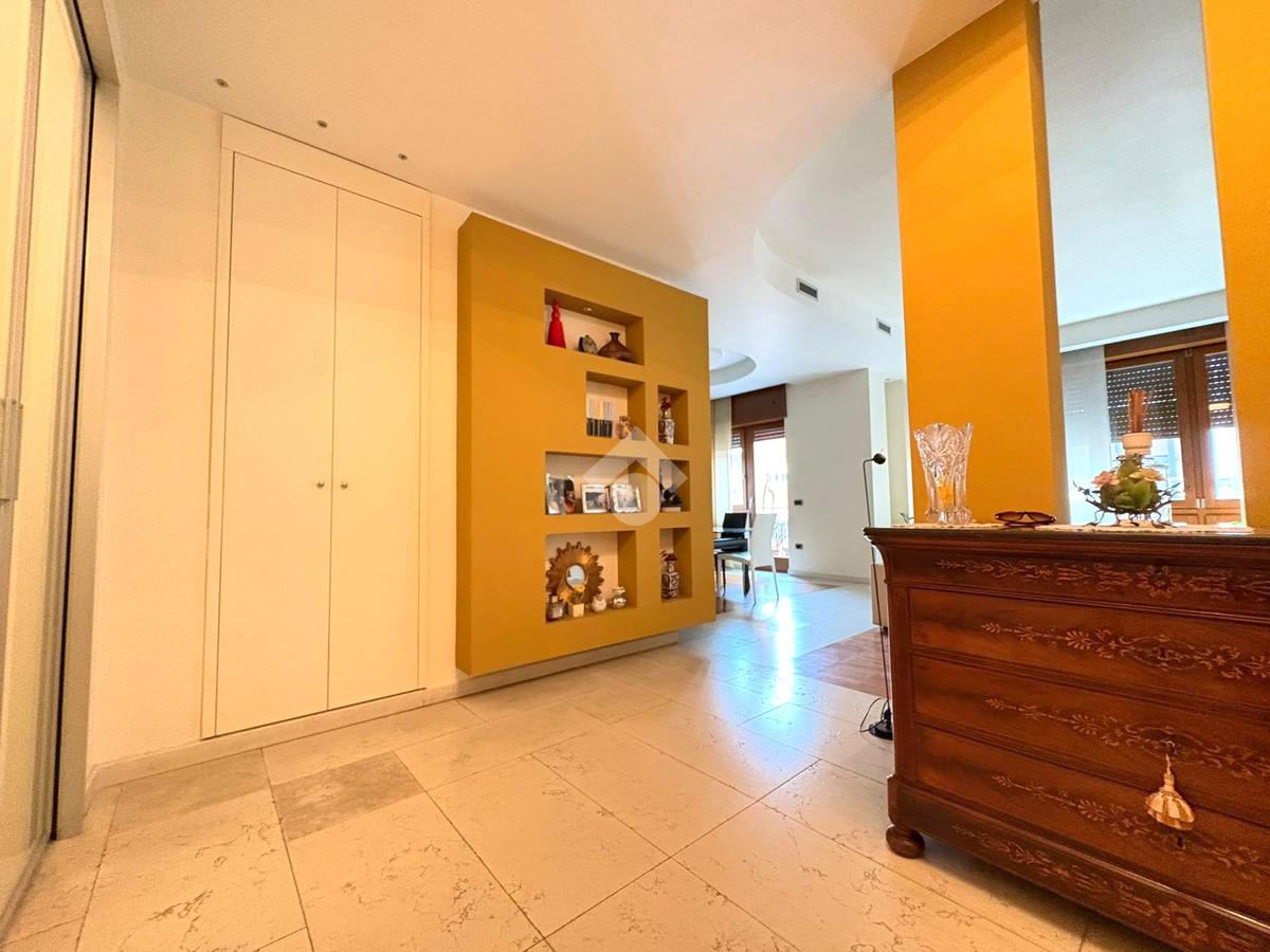 L'immobile, luminoso e soleggiato grazie ad una doppia esposizione, è composto da un ingresso in salone doppio con ampia balconata, cucina abitabile, camera da letto e camera matrimoniale con cabina armadio, camere che espongono entrambe su ampia balconata su Via Arangio Ruiz, una camera studio, lavanderia e doppi servizi, di cui uno con vasca ed uno con box doccia. Presente anche ingresso di servizio sul lato notte.
