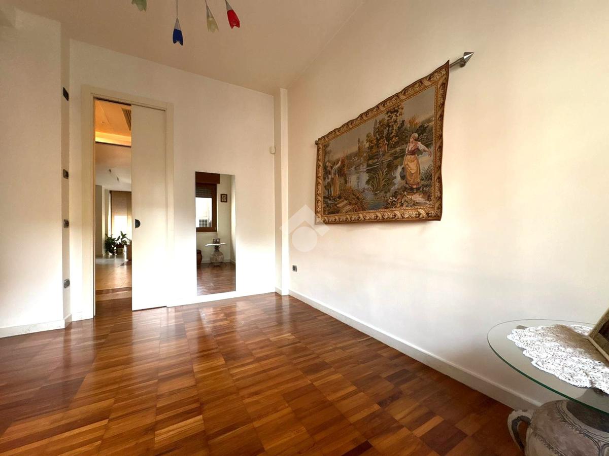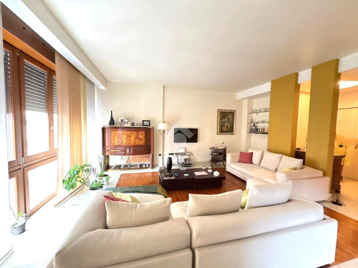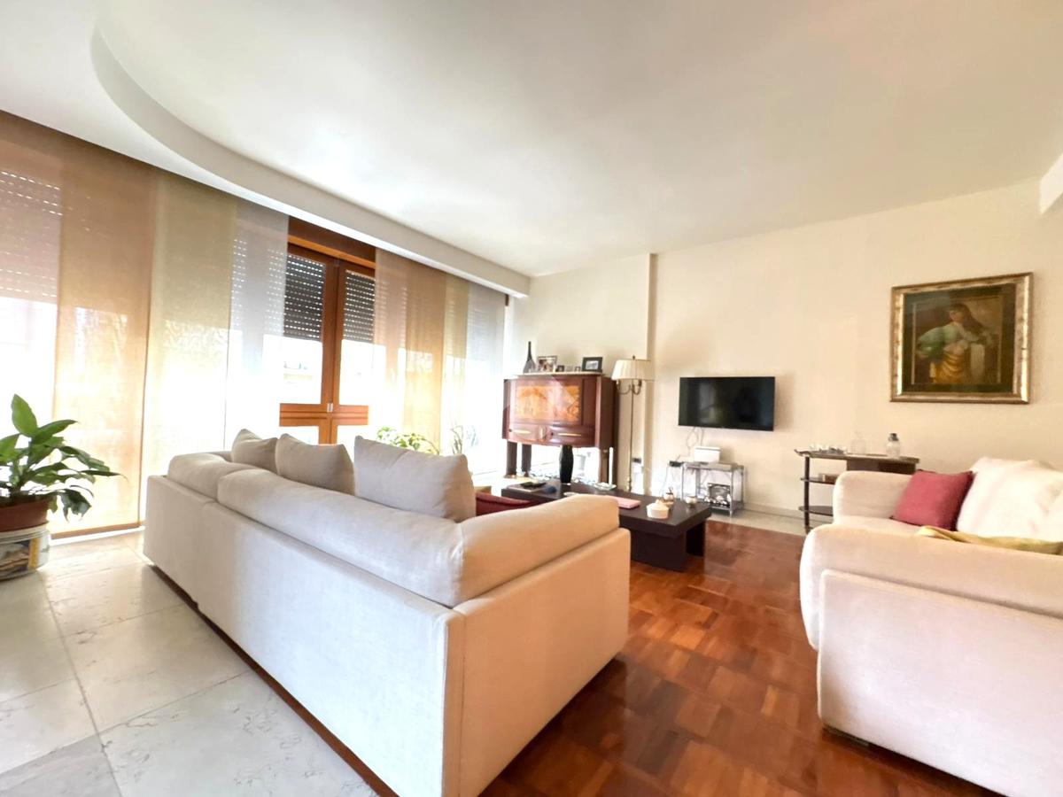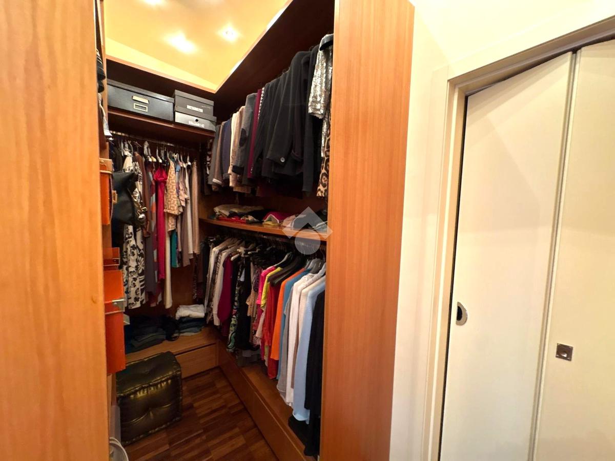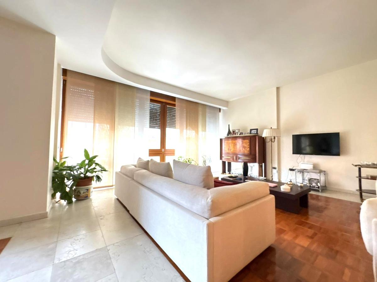 L'immobile, luminoso e soleggiato grazie ad una doppia esposizione, è composto da un ingresso in salone doppio con ampia balconata, cucina abitabile, camera da letto e camera matrimoniale con cabina armadio, camere che espongono entrambe su ampia balconata su Via Arangio Ruiz, una camera studio, lavanderia e doppi servizi, di cui uno con vasca ed uno con box doccia. Presente anche ingresso di servizio sul lato notte.