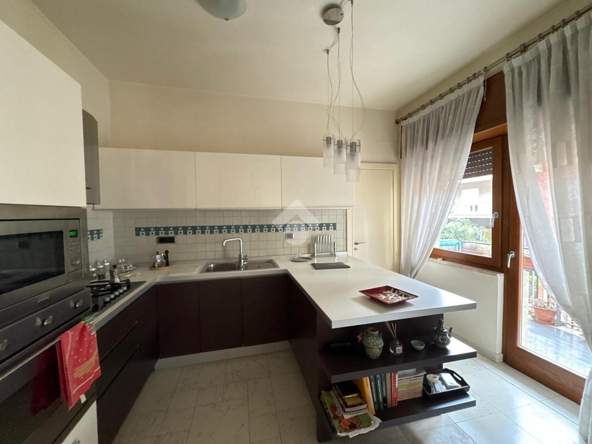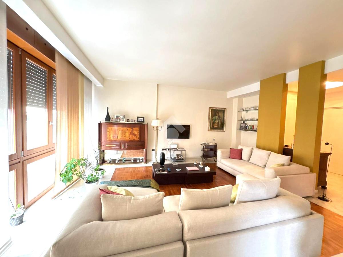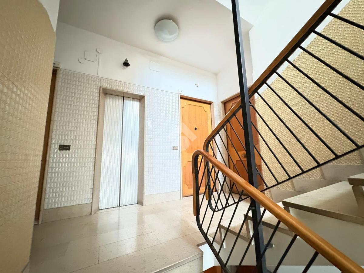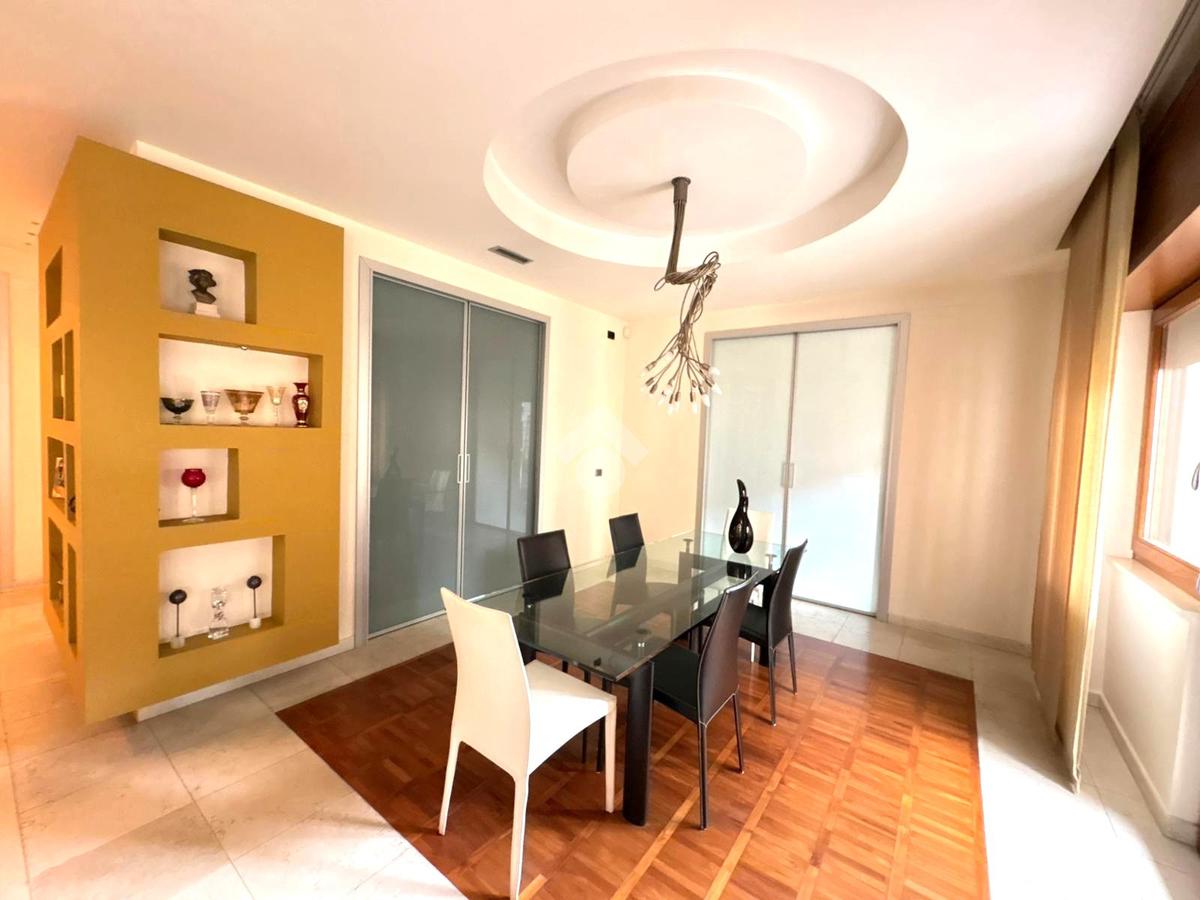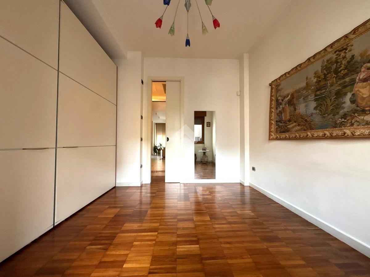 L'immobile, luminoso e soleggiato grazie ad una doppia esposizione, è composto da un ingresso in salone doppio con ampia balconata, cucina abitabile, camera da letto e camera matrimoniale con cabina armadio, camere che espongono entrambe su ampia balconata su Via Arangio Ruiz, una camera studio, lavanderia e doppi servizi, di cui uno con vasca ed uno con box doccia. Presente anche ingresso di servizio sul lato notte.