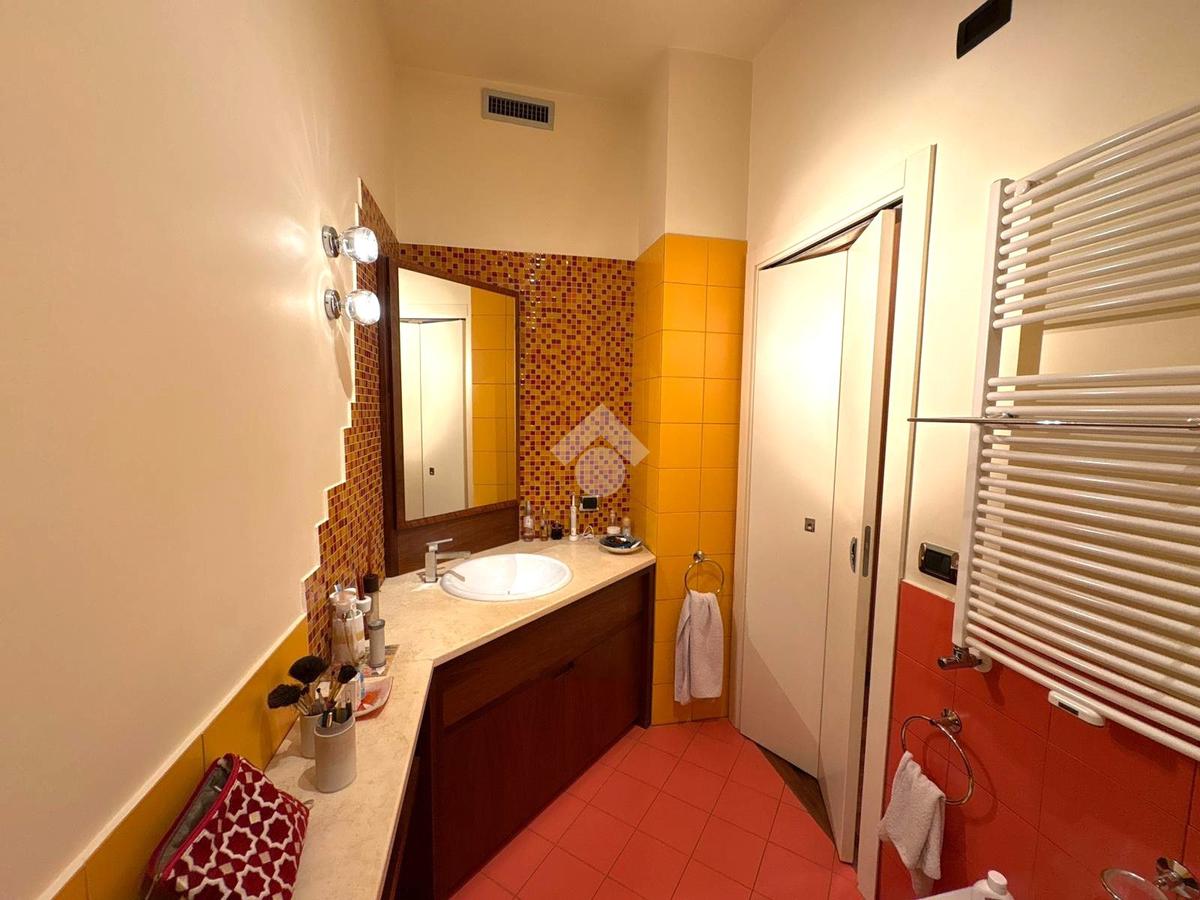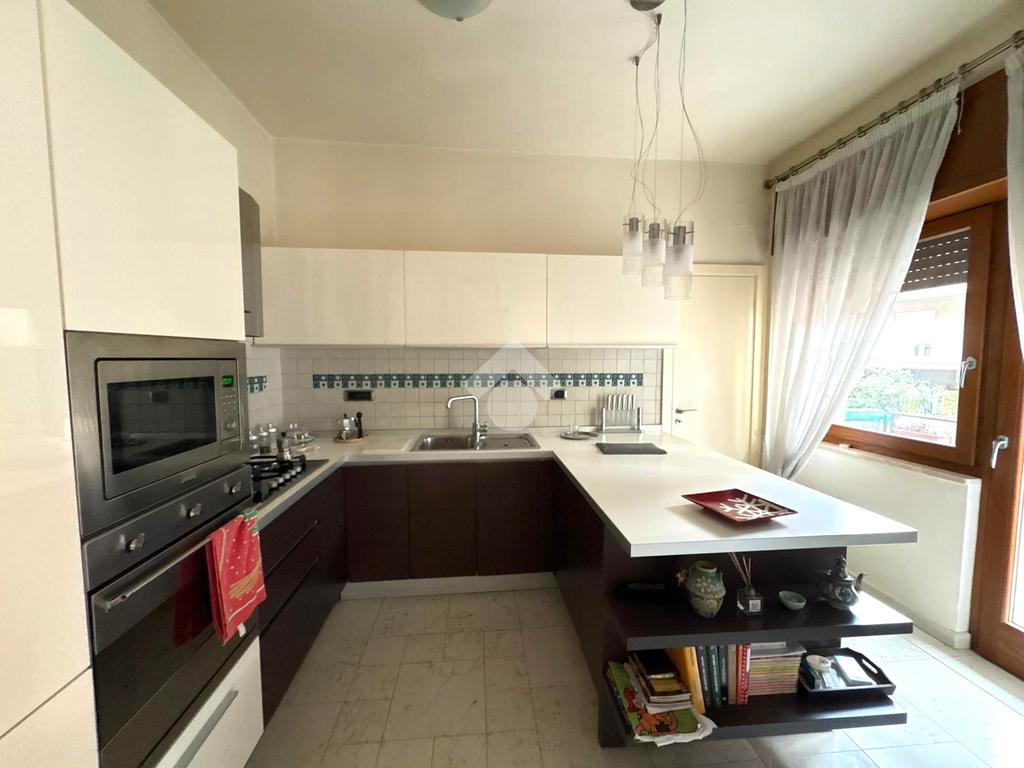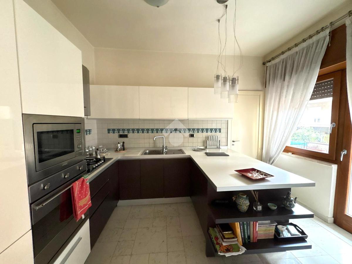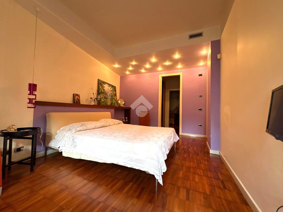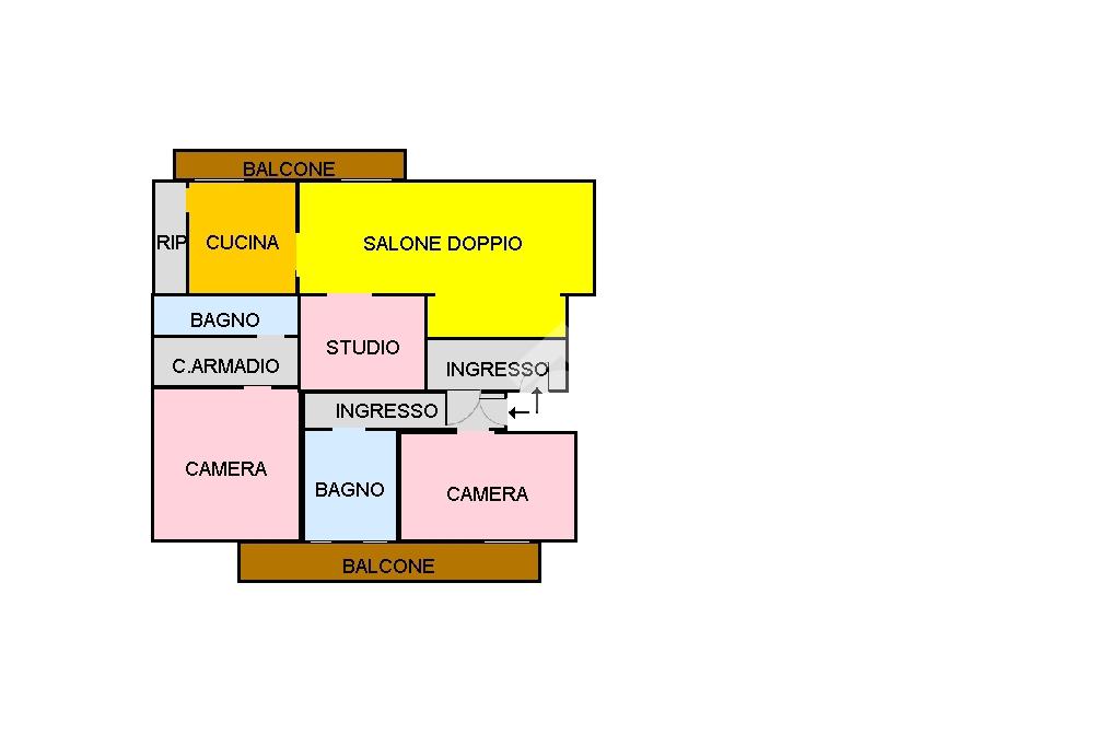 L'immobile, luminoso e soleggiato grazie ad una doppia esposizione, è composto da un ingresso in salone doppio con ampia balconata, cucina abitabile, camera da letto e camera matrimoniale con cabina armadio, camere che espongono entrambe su ampia balconata su Via Arangio Ruiz, una camera studio, lavanderia e doppi servizi, di cui uno con vasca ed uno con box doccia. Presente anche ingresso di servizio sul lato notte.